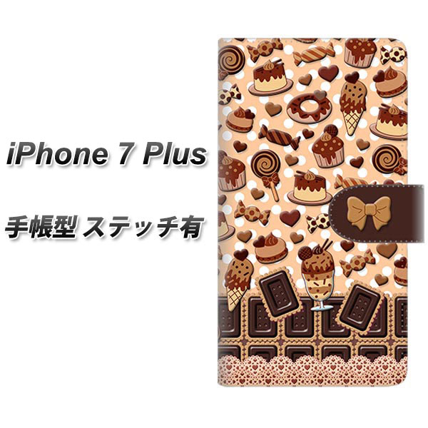 iPhone7 PLUS 手帳型スマホケース 【ステッチタイプ】【AG859 チョコクッキー&スイーツ ブラウン】(アイフォン7 プラス/IPHONE7PULS/スマホケース/手帳式)で、