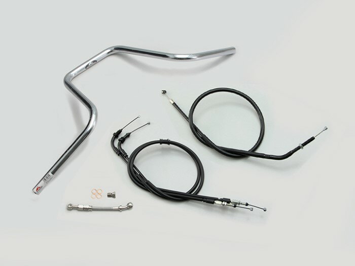 【NAPSおすすめポイント】 【対応車種】ホンダモンキー125 ‘2018 ‘2021 備考:JB02 【商品情報】 【商品説明】ハンドルと必要なケーブル&ホースSETハンドル穴開け加工が必要■付属・スロットルケーブル・クラッチケーブル・ブレーキホース【注意】※ブレーキホースは、ABS車用ジョイント仕様※別途ハーネスの延長 サイドキャップ(内径φ18mm)が必要