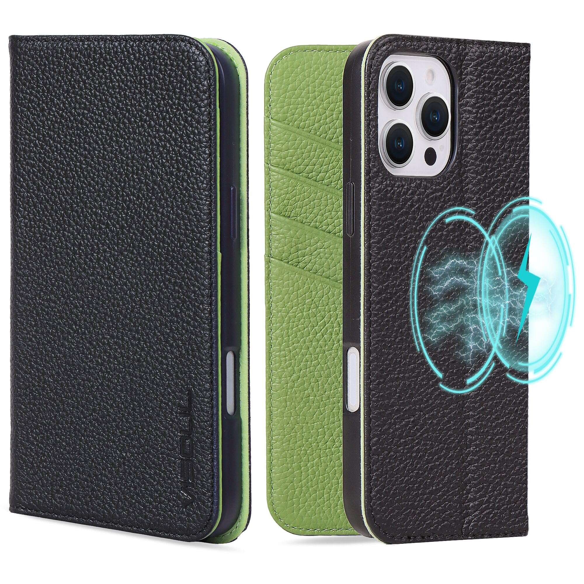VISOUL iPhone16 ProMax 対応ケース 手帳型 本革 スマホケース レザーケース 手帳型ケース アイフォン16 ProMax ケース カード収納 携帯ケース 全面保護 柔軟なTPU素材 スタンド機能付き ワイヤレス充で、