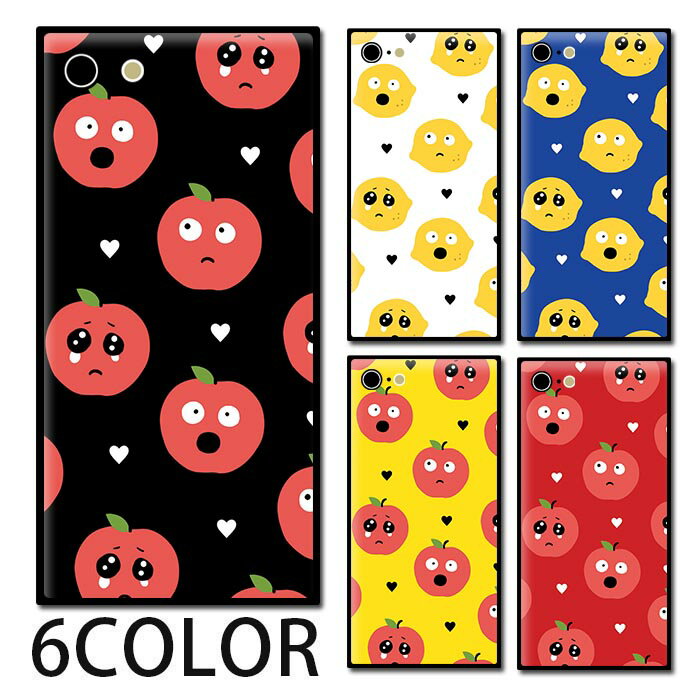 iphone15 ケース | スマホケース スクエア ガラス ぴえん レモン りんご 林檎 フルーツ 果物 絵文字 iphone15 pro MAX iphone14 pro MAX iphone13 pro iphone8 iphone8plus iPhoneケース 四角 TPU ガラスケース オシャレ かわいい 可愛い 背面ガラス 強化ガラス TPU ハードケース