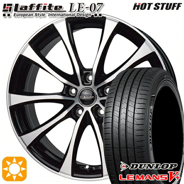 【取付対象】プリウス カローラ 195/65R15 91H ダンロップ ルマン5+ HotStuff ラフィット LE-07 ブラックポリッシュ 15インチ 6.0J 5H100 サマータイヤホイールセットで、
