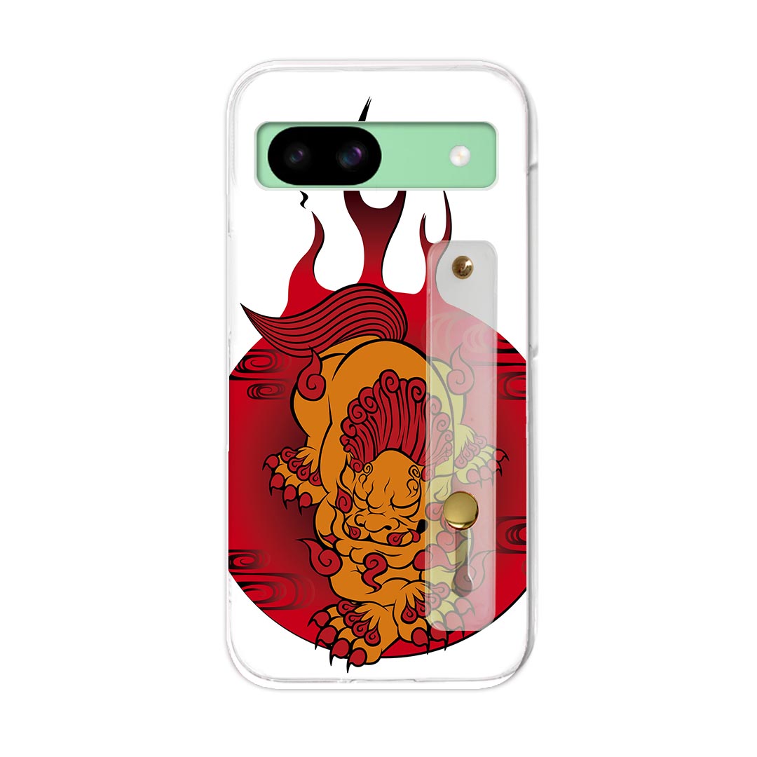 【送料無料】Pixel 8a 用 ハードケース スマホ ベルト付 スマホバンド 落下防止 シリコン スタンド機能付 リング スリム 背面 片手持ち カバー 携帯リング フィンガーリング 角度調整 003421 シーサー キャラクター イラストで、