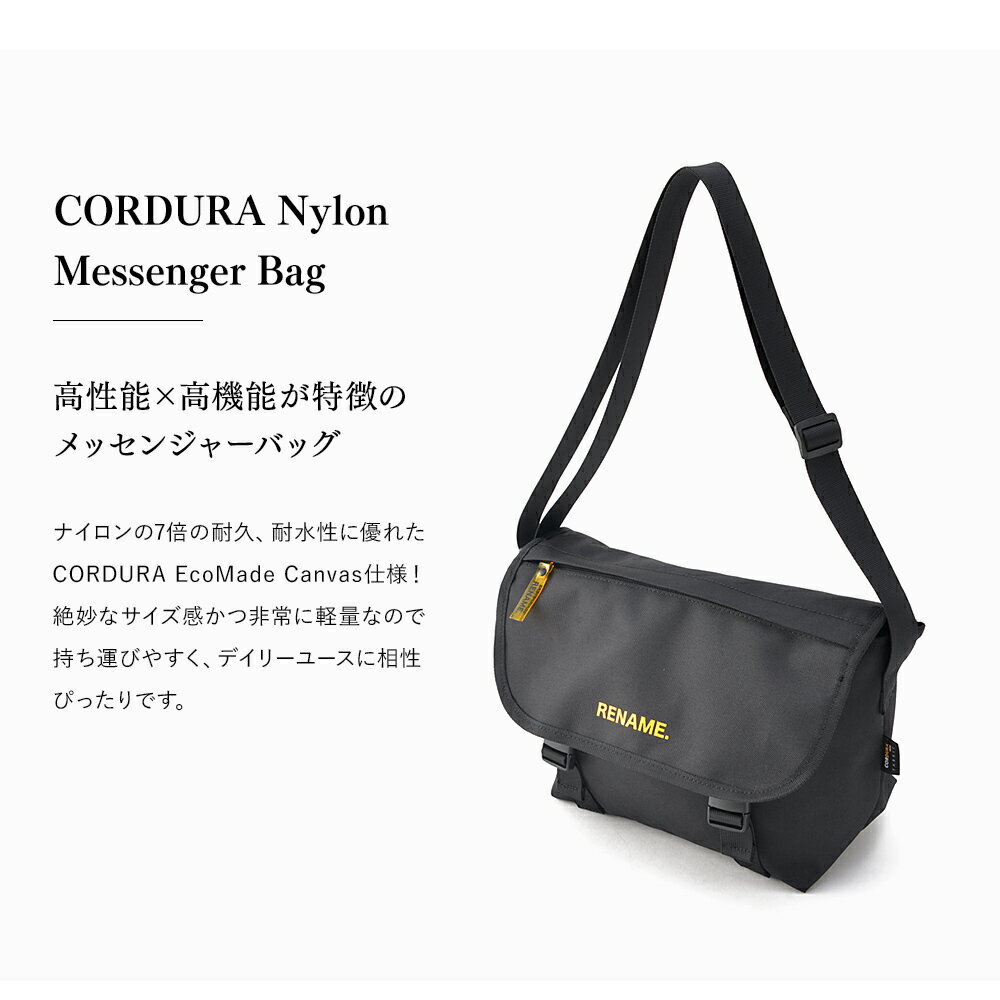 【商品名】 Rename CORDURAナイロン ダブルバックルメッセンジャーバッグ 【商品説明】 ワンポイントのセンターロゴがアクセントに! 本体は耐久性、耐水性に優れた CORDURA EcoMade Canvas仕様! メイン収納は、マチをしっかり取ってあり、 ペットボトルや長財布なども楽々収納可能! Re nameは(株)トップハウスのオリジナルブランドです。